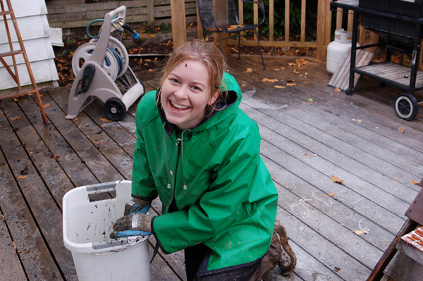 If I post all these kind of pictures on the internet willingly no one can black mail me with anything right? Ya, I had that little leaf on my forehead for a good hour before someone told me. Why did I wait until it was raining to clean my gutters? Because it’s Oregon, I’d have to wait until freaking July to do it in the sun. And good thing too, when I got up there they were almost overflowing with water. Thanks for the action shots Sciarrino. I’m really hoping my guests stop at the cupcakes on the dining room table and don’t glance into my nasty ass back yard. Ew.