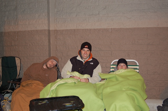 Outside Fred Meyer’s at 7 pm they cracked and had to call me for blankies and a little table to play poker on. They’d been their three hours already and they (from left; my cousin Ryan, Bj, and Brent) have five more still. I’m getting married to a nerd. But a cute one. And after all, I think I might be more excited then him to try out the Wii, and I’m the one whose nice and warm and scrapbooking right now. hehehehe I win.