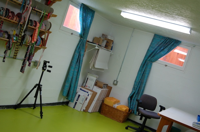 Let there be light! And now onto the shame of my house… the lack of curtains in the craft room. A room that faces to the street, and for months my neighbors have seen sheets and an old coverlet up on sagging tension rods. This can be no more, and I’m testing out fabrics: