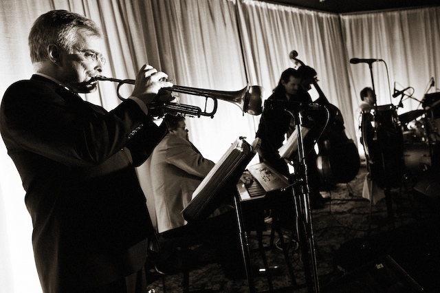 We had listened to all these "wedding bands" but they were too cookie cutter for us, we wanted something different, more romantic and special. Emee suggested Johnny Martin. He plays little gigs at hotels around Portland, but then he knows a bunch of guys who can accompany him when he plays big band stuff. He only does forties music, but that fit perfect with our old school style we were going for. We also had a DJ for MCing and dancing later.