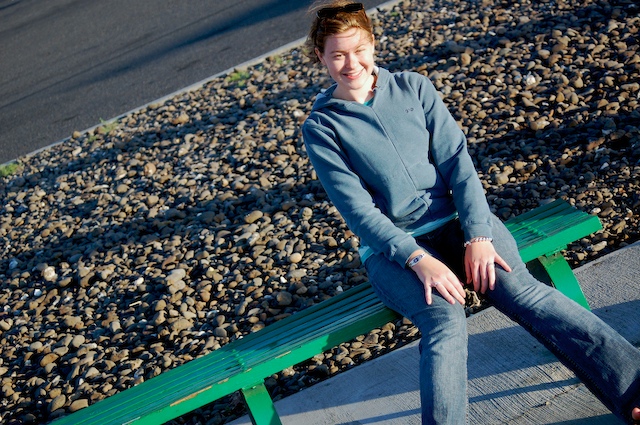 Good for the clouds though. I love clouds like this, not the usual gray all over the sky kind so much (those tend to bring lots of drizzle, these are just for looks). We stopped at a viewpoint with the best green benches: