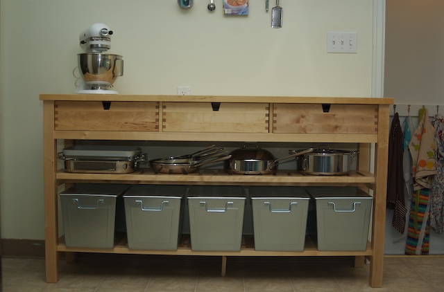 I tired merging those two but it didn’t work out. So we bought that buffet thing knowing it wouldn’t fit, and just got around to cutting the top. It’s still makes the opening a little smaller (from the dining room to the kitchen) but not bad enough to really be annoying. The reason this is so great is that little plug you see there, it’s a grounded gfi plug, the only one in the kitchen, and now we have a workspace there so we can use it! An additional plus is all the new freed up space in our cupboards. So this is supposed to get us to cook more. Let’s hope it does!