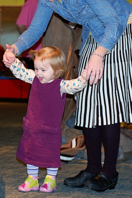 She’s standing, walking, babbling like crazy. I got to spend the night and then hang out with her the next day. She kept reaching up for my fingers to do this: