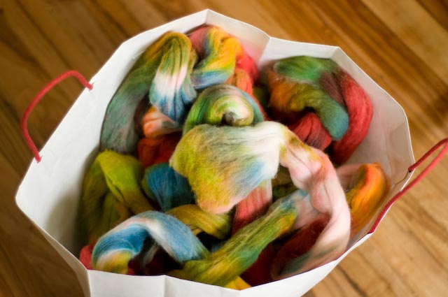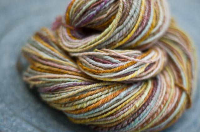 This Pigeonroof Studios fiber is ready to ply. Since I have to put a different head on my wheel to ply I’ve also got out a bunch of this fiber to play with: