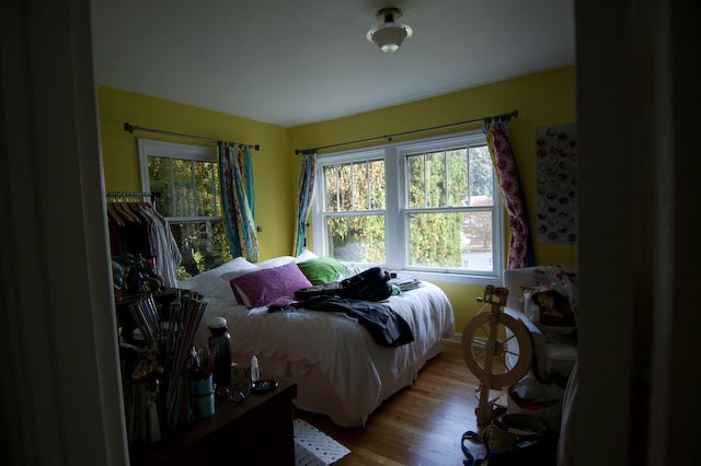 Ya, that hole goes up into the elements. So where are we living? Crammed into the front room, which was my craft room.