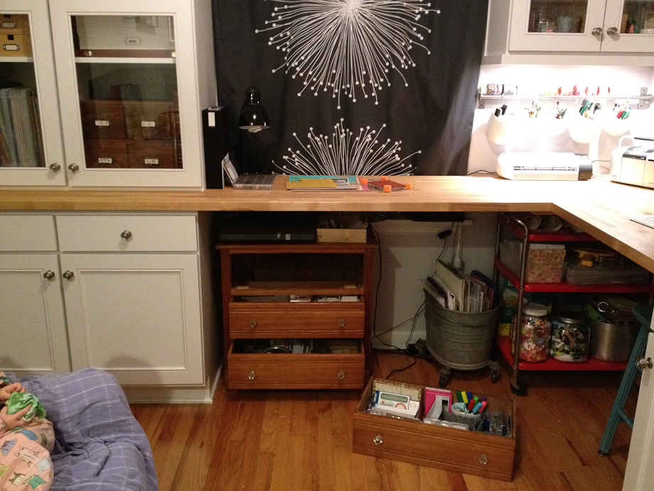 I still want to paint it some bright fun color, and have to fix the top drawer (didn’t inspect closely enough and it was taped on the side), add castors, etc…. But I love it!