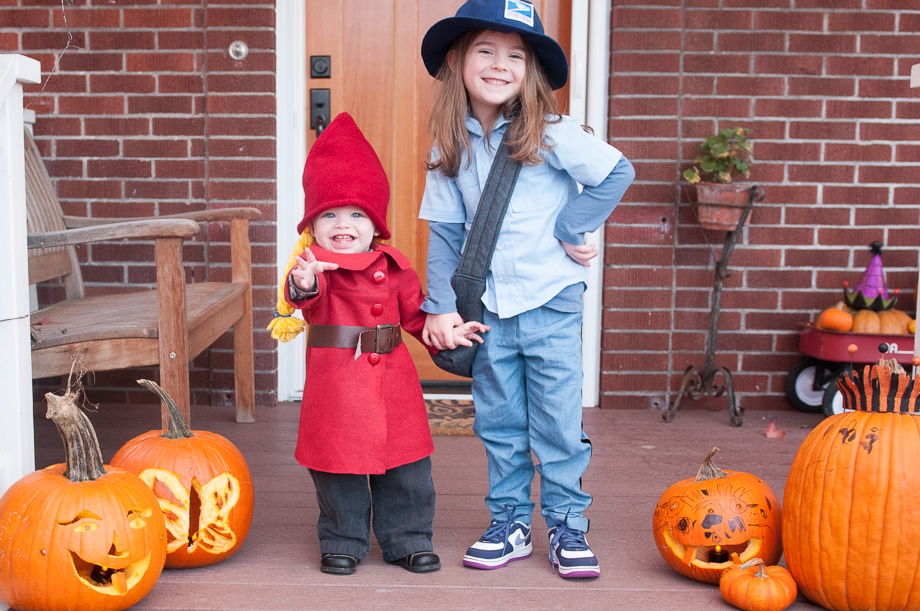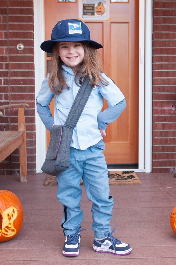 Tuesday had a change of heart about the mail carrier outfit. When I asked her why she didn’t want to wear it on Halloween she said, “because I’ll get cold”. Well that was easily solved with a phone call to Nana.