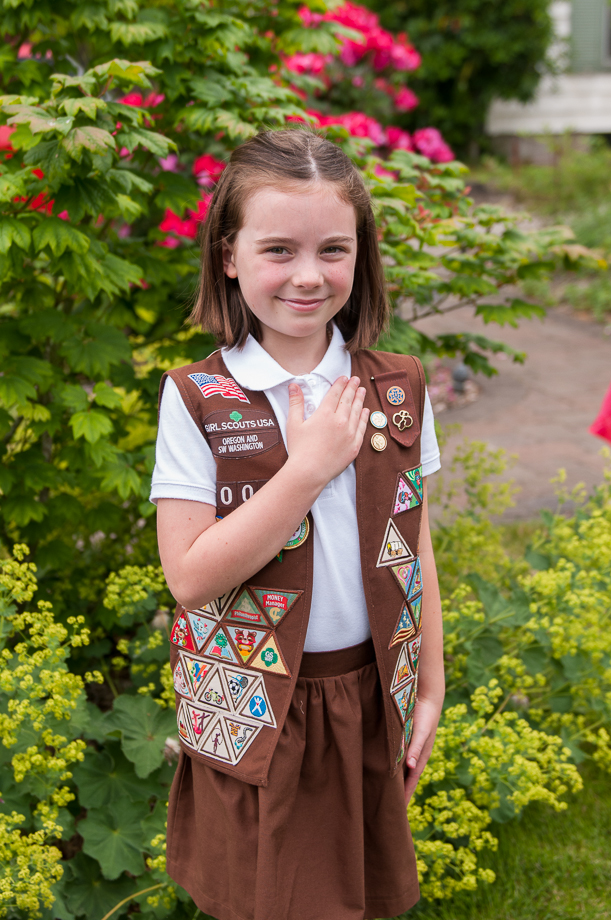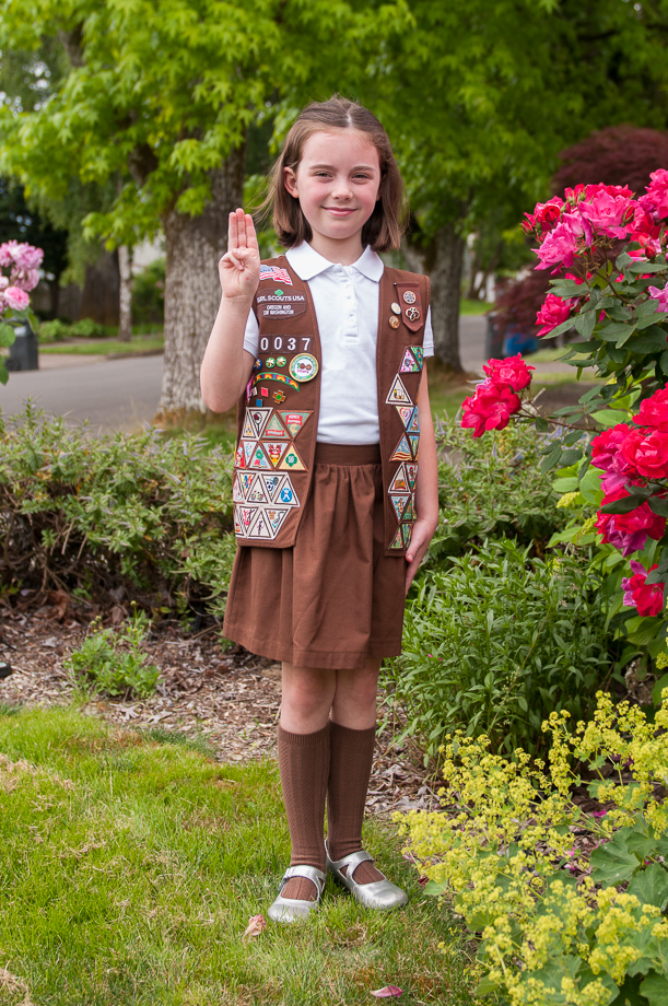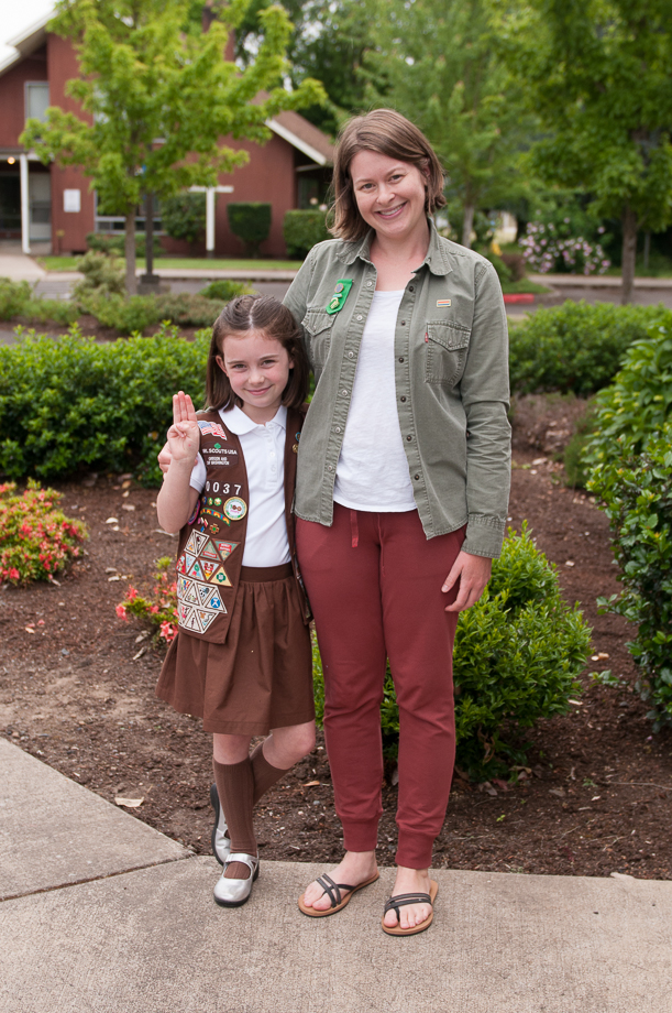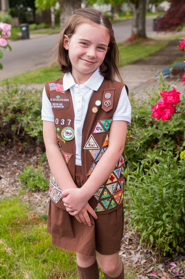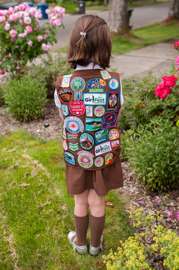 Ya, I made myself a patch jacket from my favorite jacket (I wore it in my engagement pics!). I’m so proud of my Girl Scout. I’m proud of everything I did as a girl with Girl Scouts and it’s fun to be involved again as a parent and volunteer. Earlier this year Tuesday and I went with a friend of hers and her mom to New York City. We were toured the Girl Scouts of the USA headquarters. Amazingly the CEO came out of her meeting when she heard the girls reciting the Girl Scout Promise. She handed them her personal patch and explained how she chose what she did on it because she’s a rocket scientist. It was amazing and I cried. Tuesday has learned so much about friendship, community, and leadership through Girl Scouts. I absolutely can not wait to see what she does as a Junior. In the fall we’ll have another Girl Scout in the house; Bennet will be a Daisy! And I’m going to be the leader. Wish me luck!
